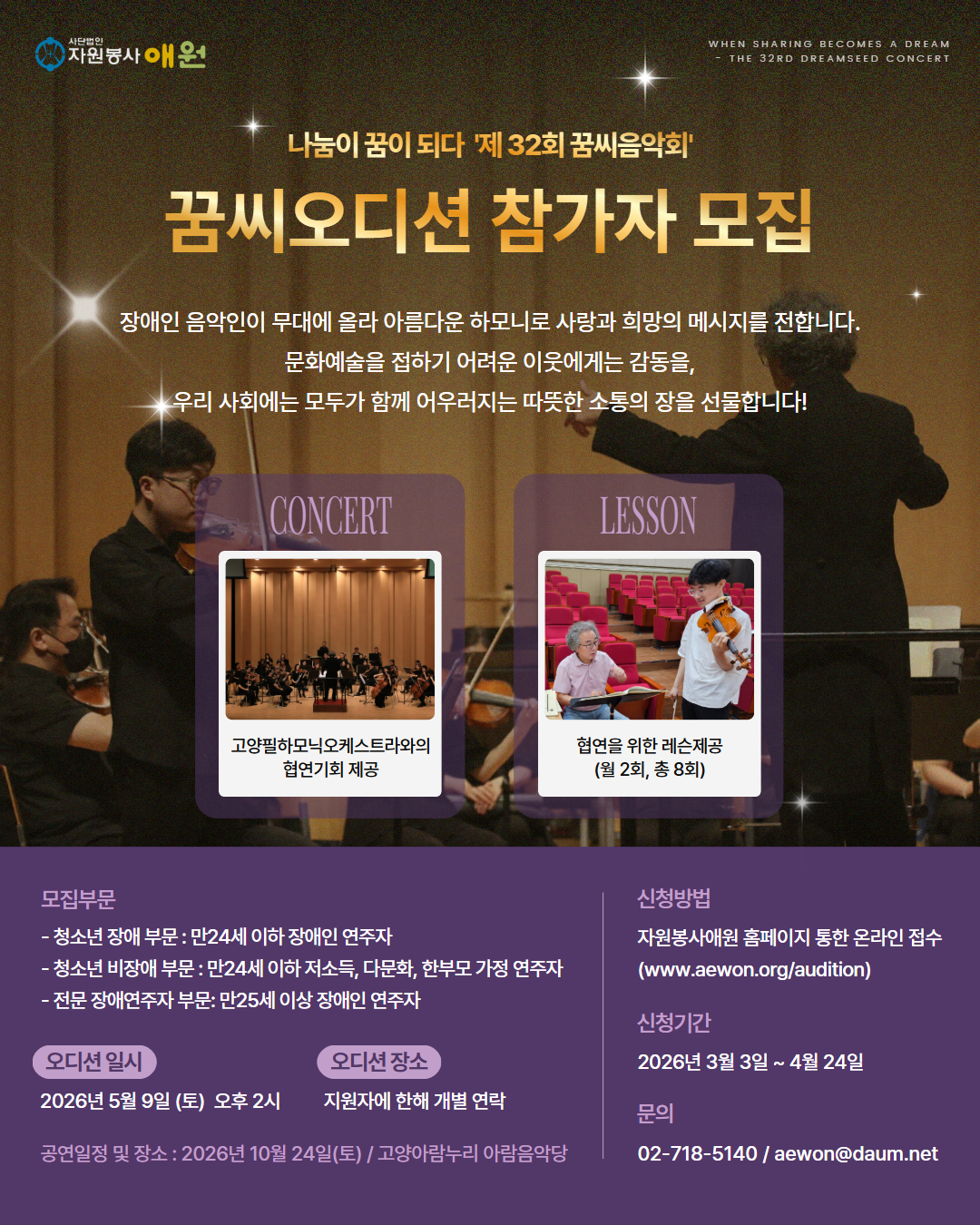 [자원봉사애원] 꿈씨오디션 참가자 모집