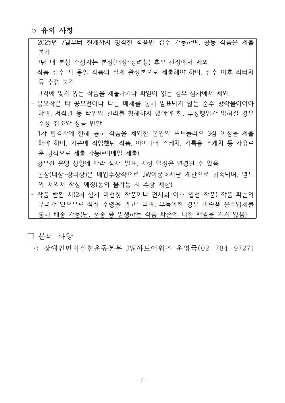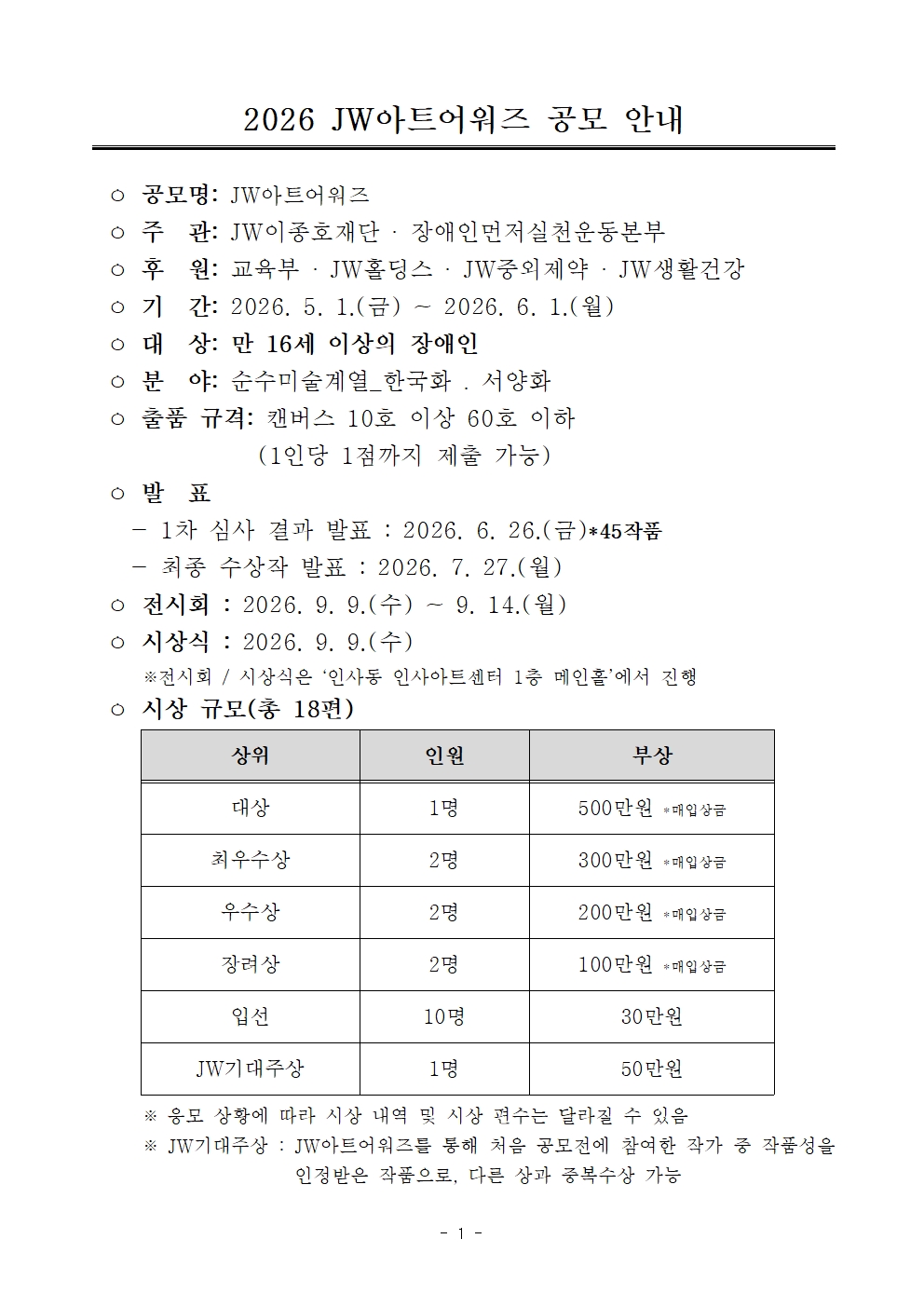 문의 : 장애인먼저실천운동본부 JW아트어워즈 운영국(02-784-9727)