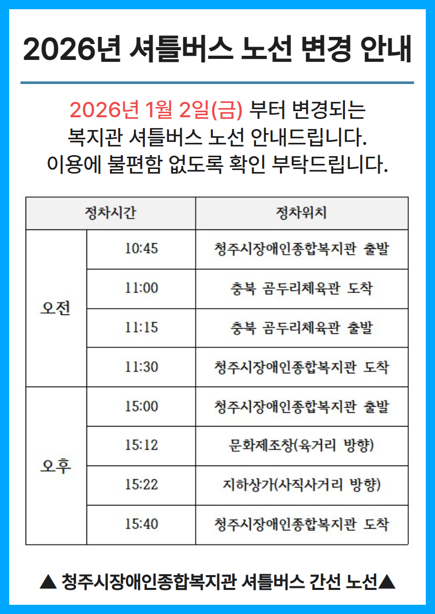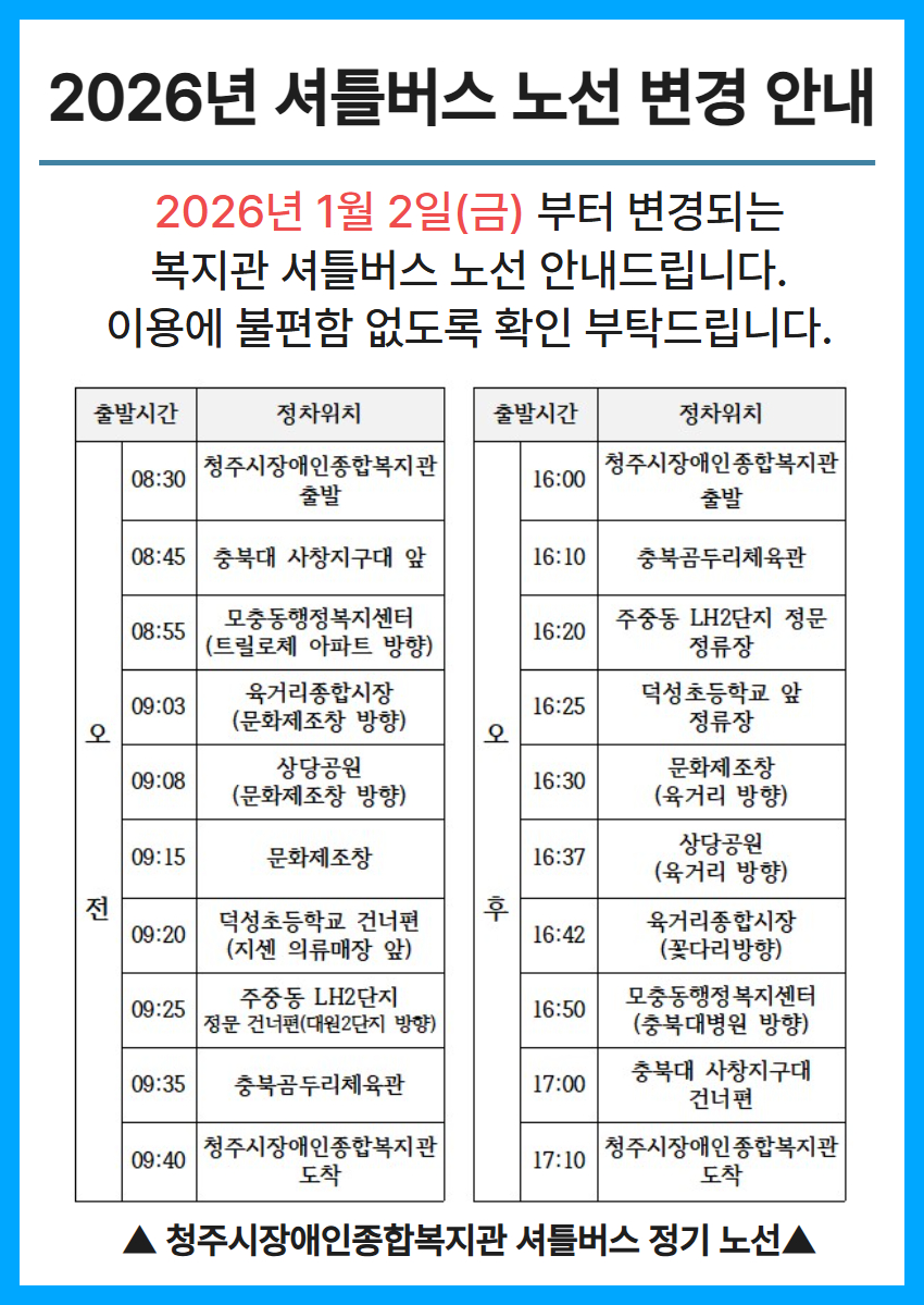 2026년 1월 2일 금요일부터 셔틀버스 노선이 변경됩니다.