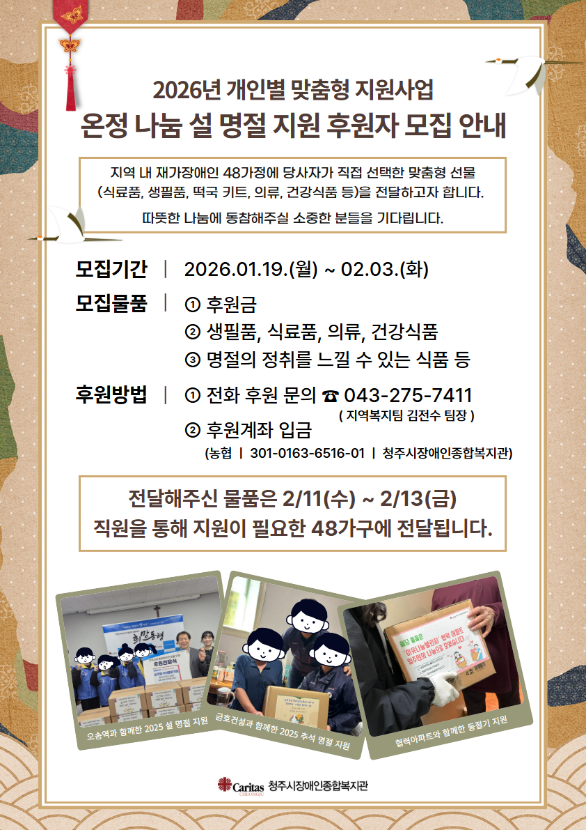 [모집] 2026년 개인별 맞춤형 지원사업 '온정 나눔 설 명절 지원 후원자 모집 안내'