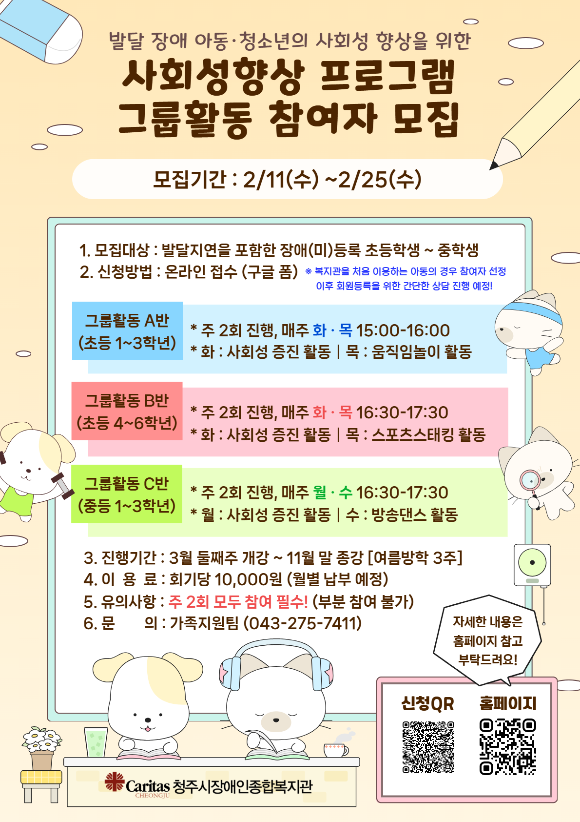 2026년 사회성향상 프로그램 아동청소년 그룹활동 참여자 모집