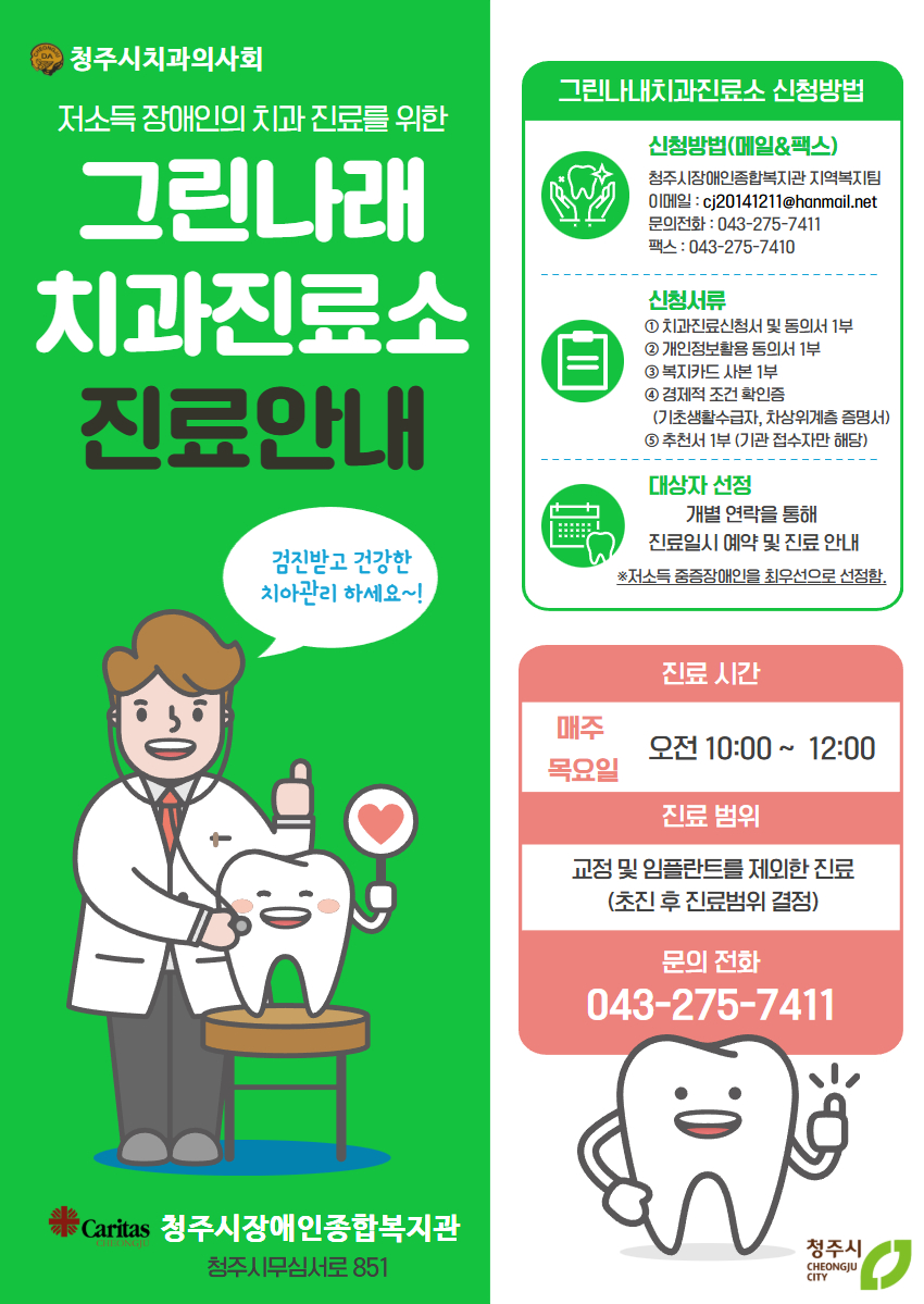 3. 진료장소 : 청주시장애인종합복지관 2층 그린나래치과진