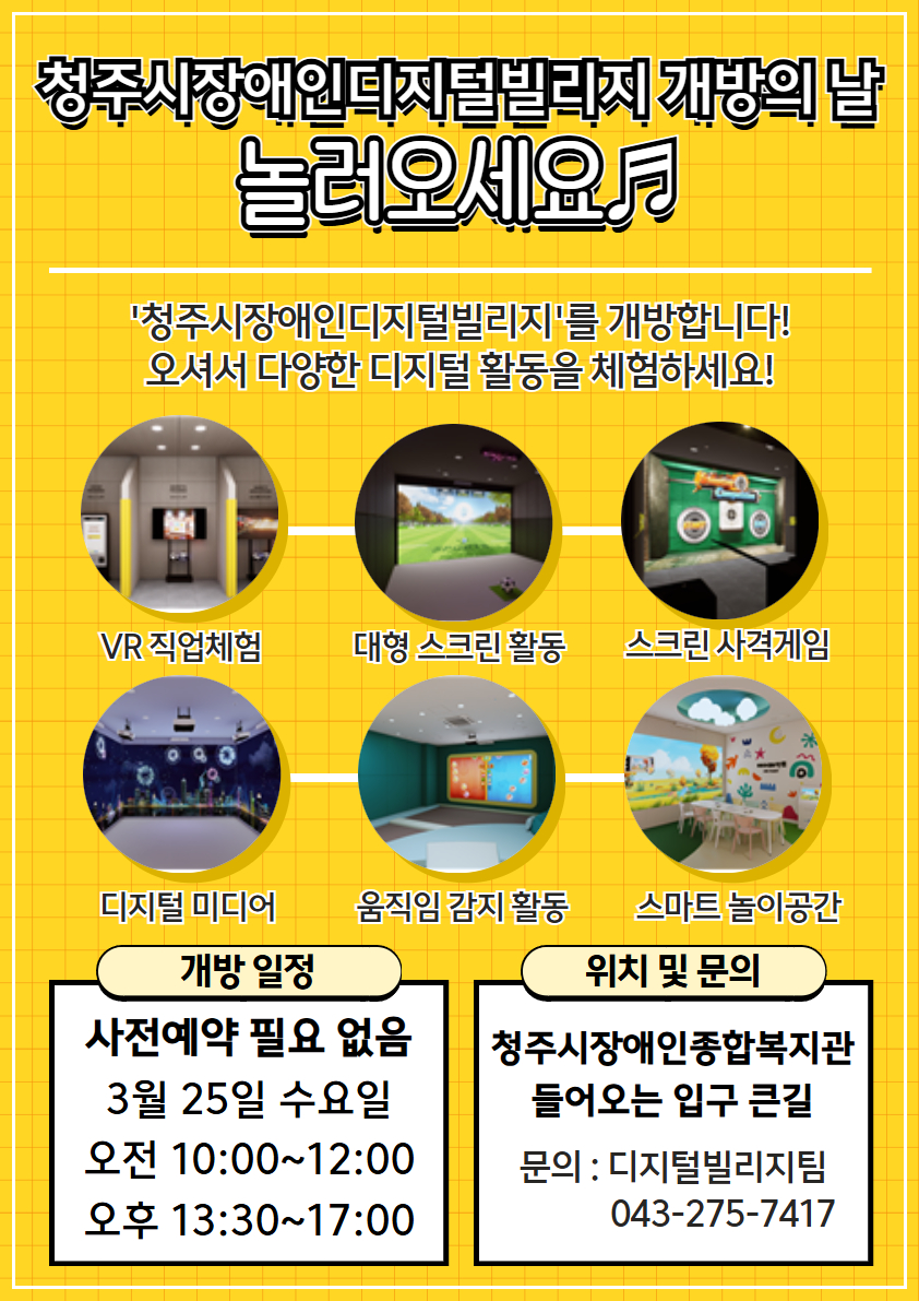 청주시장애인디지털빌리지 개방이 25일 하루 사전예약 없이 진행됩니다!