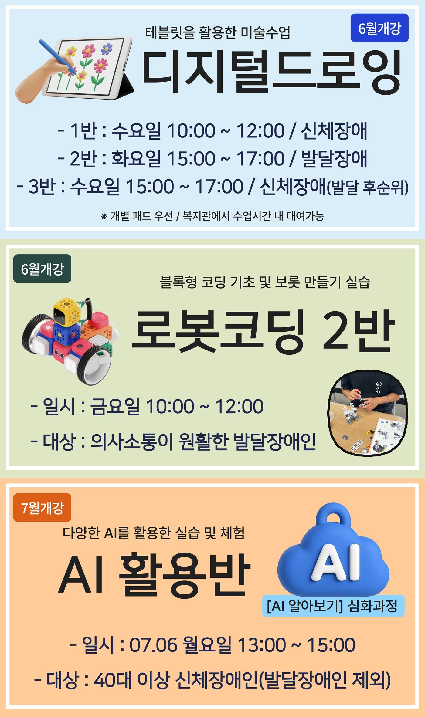 -3반 : 화요일 15:00~17:00 / 등록장애인(발달장애인 제외) 8명