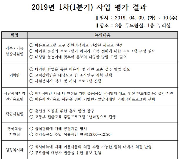 [공지] 2019 년 1차(1분기) 사업 평가 결과