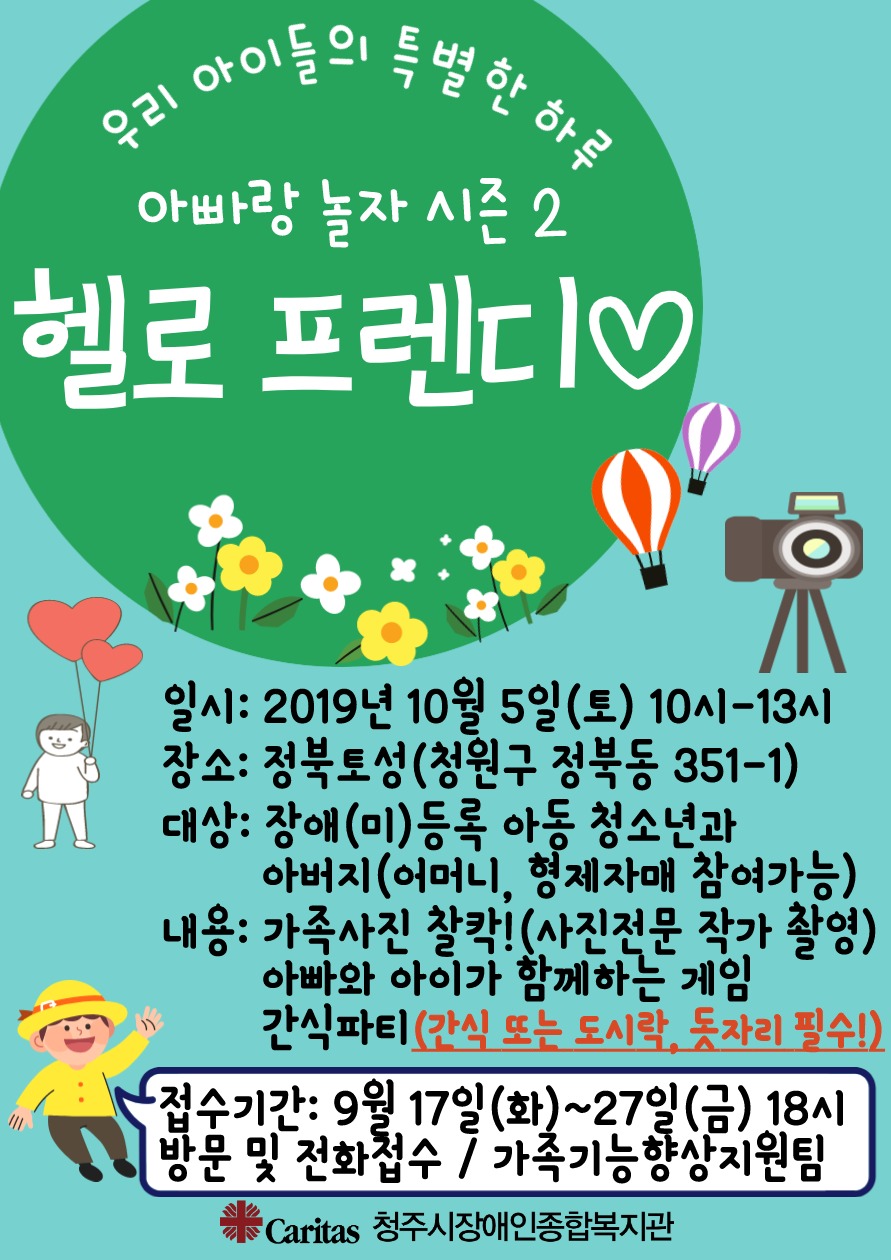 안녕하세요. 청주시장애인종합복지관 가족기능향상지원팀 입니다.