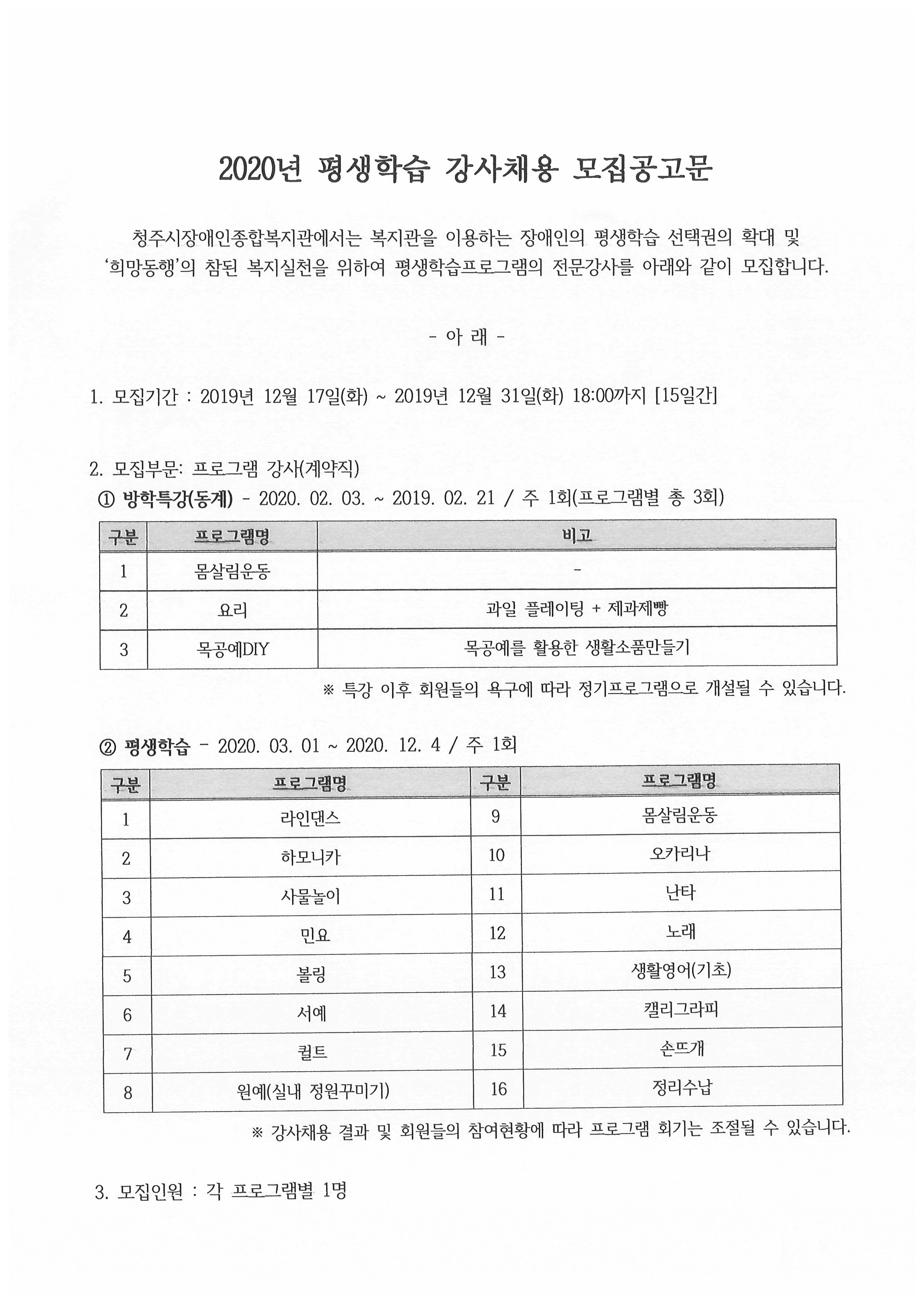 - 다음글 2020년 평생학습 프로그램 강사 채용(재공고) 2020.01.06