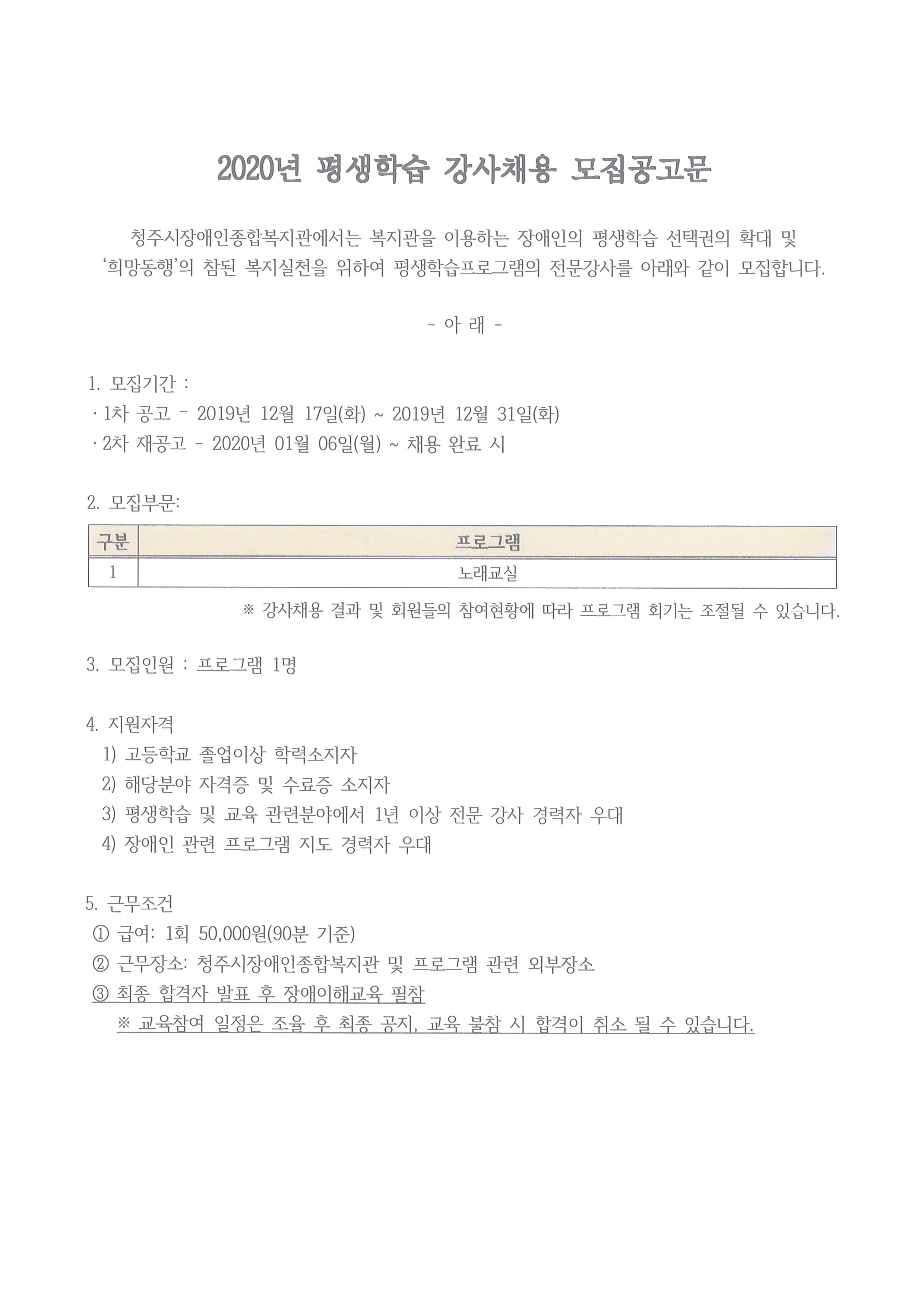 [평생학습지원팀] 2020년 평생학습 프로그램 강사 채용(재공고)