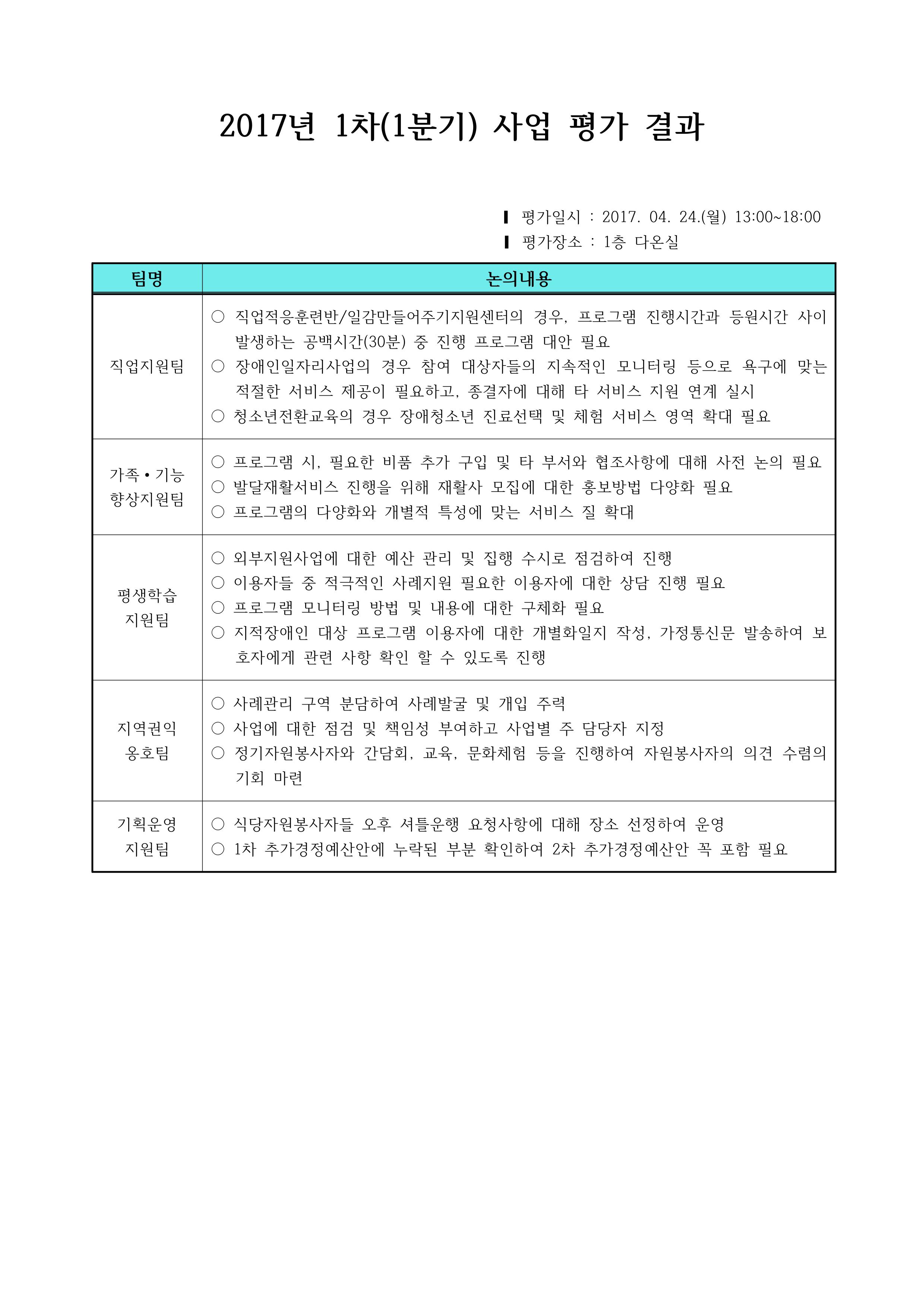 2017년 1차(1분기) 사업평가 결과를 아래와 같이 공고합니다.