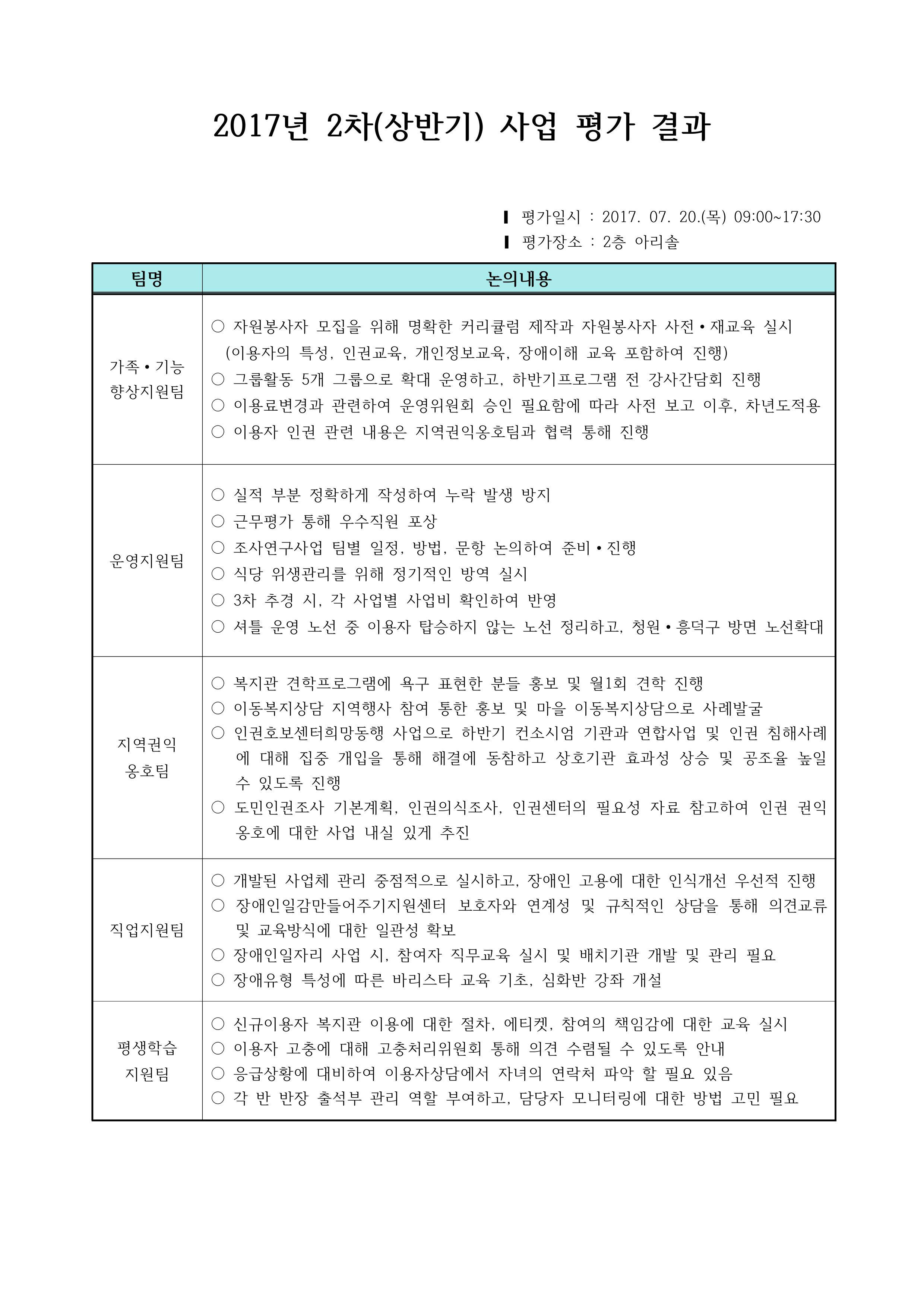 2017년 2차(상반기) 사업 평가 결과를 붙임과 같이 공고합니다.