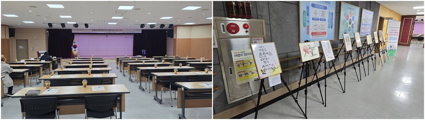 행사 한 켠에는 2025년 장애인식개선 캘리그라피 공모전 수상작들도 전시되었네요!
