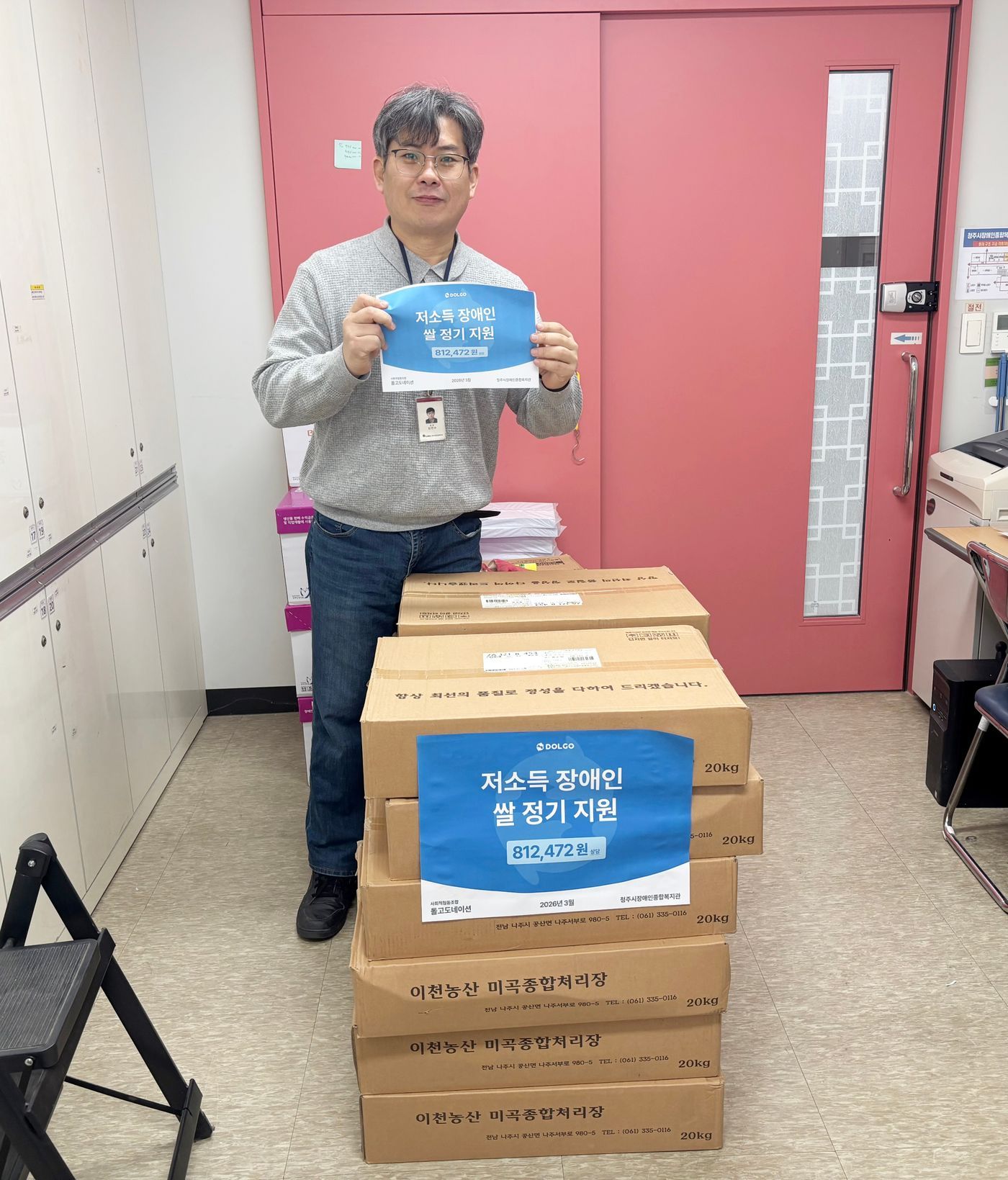 20kg 12포대 총 812,472원 상당의 쌀을 지원해 주셨습니다.